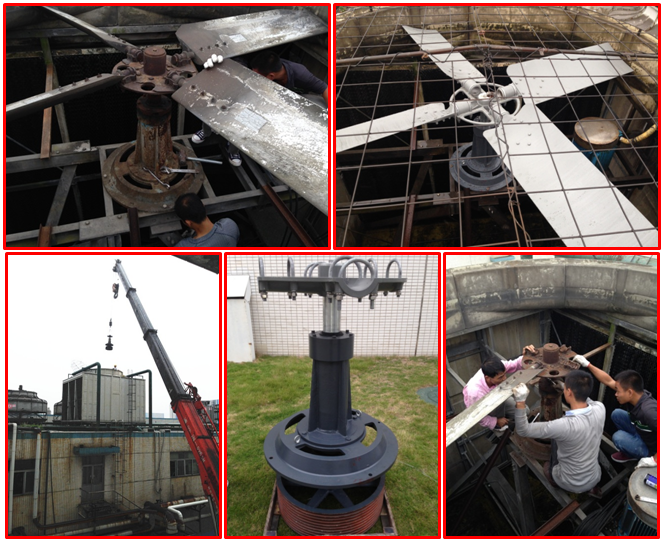 捷普電子冷卻塔減速器、電機(jī)、風(fēng)機(jī)均由我公司完成改造。
